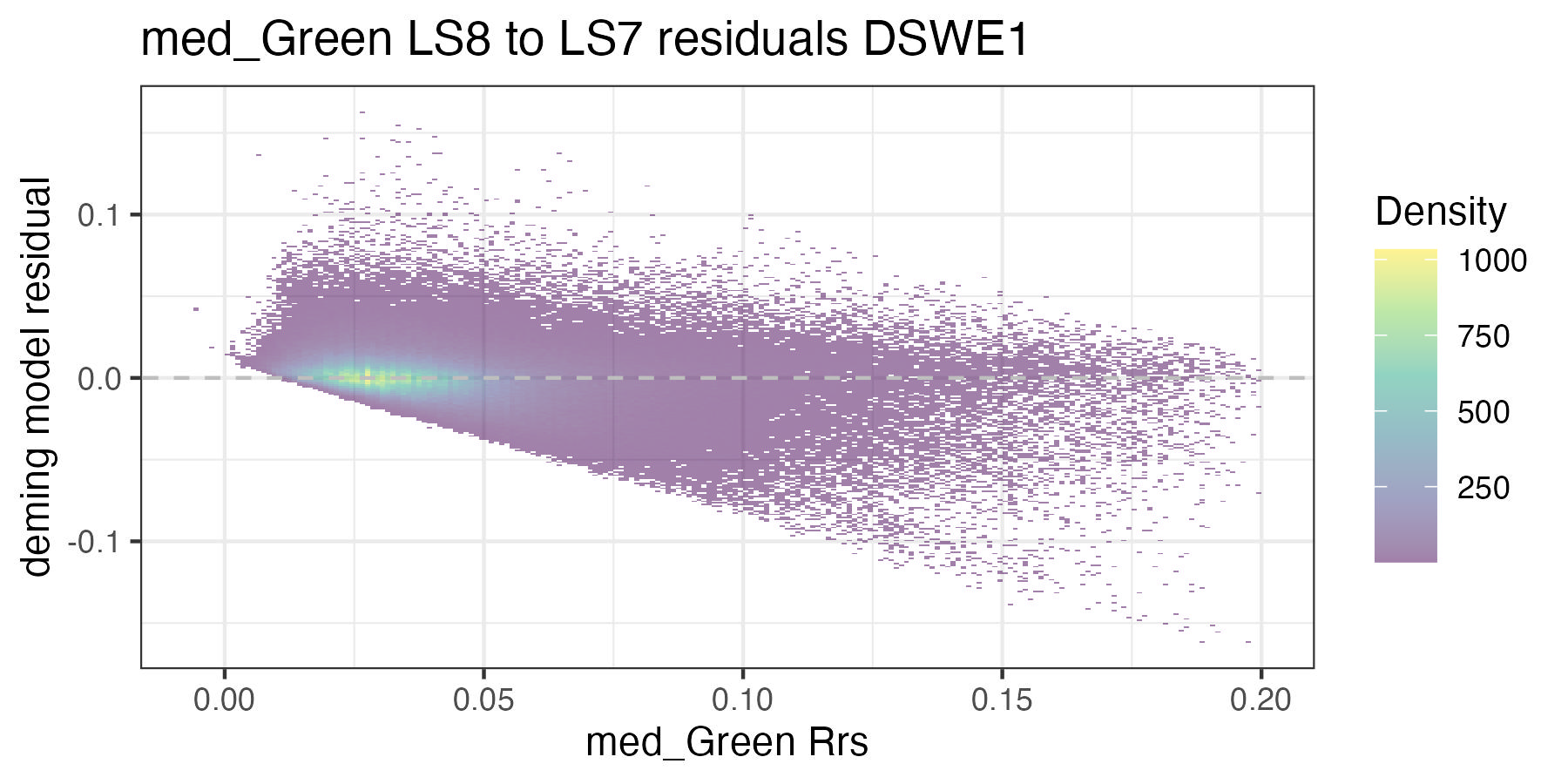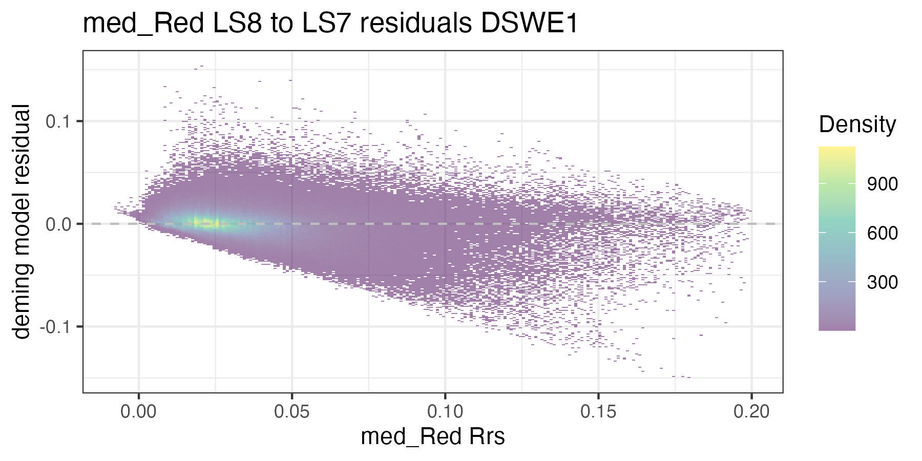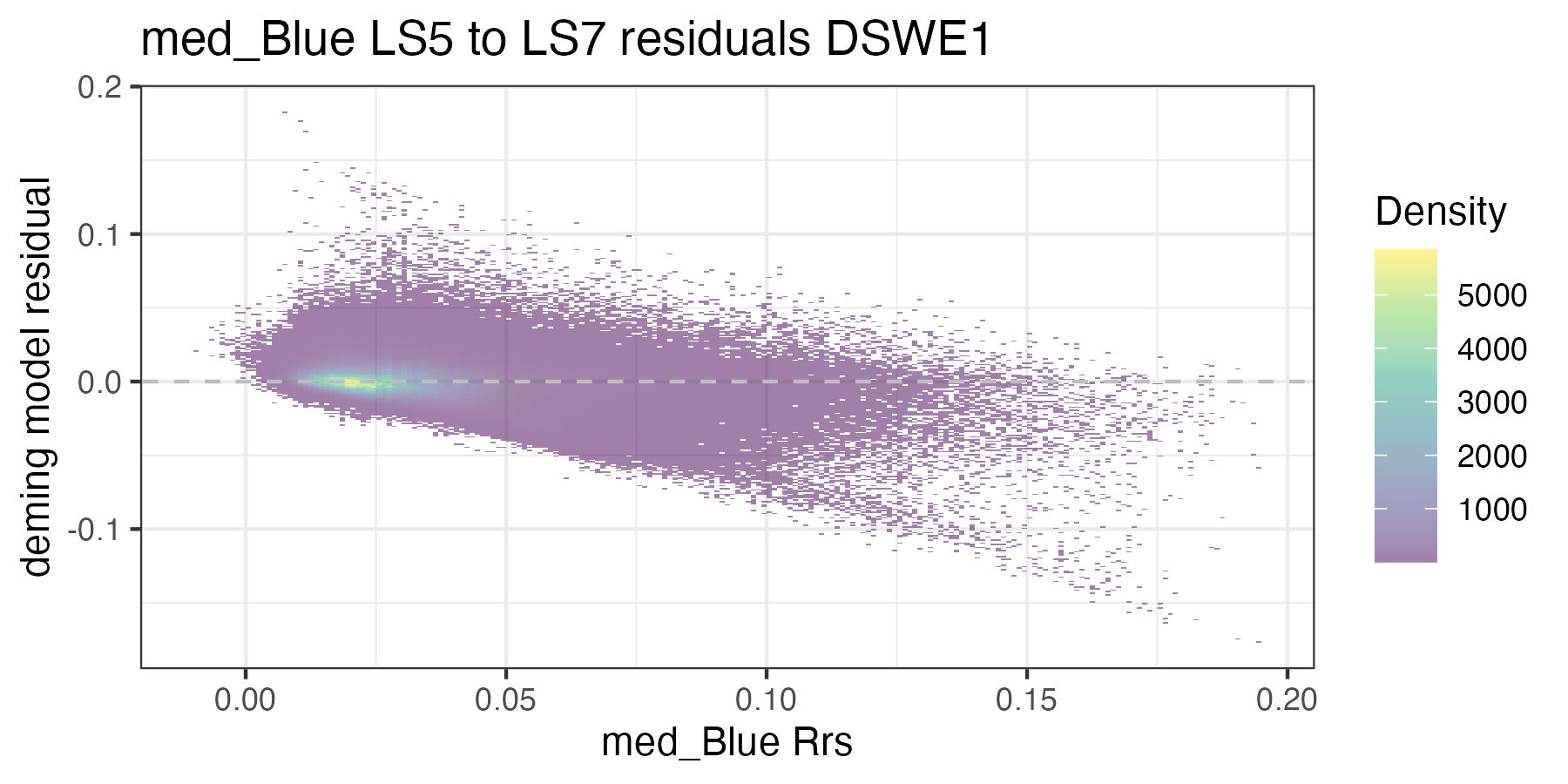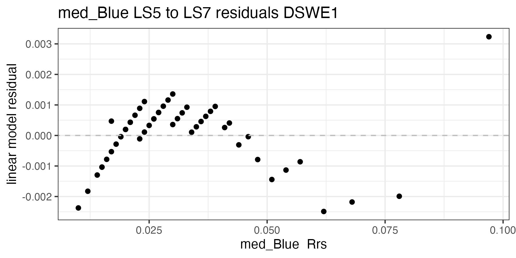 For the purposes of this document, we only present the handoff coefficients for DSWE1 (confident water) and do not investigate differences between the DSWE1 or DSWE1a coefficients, though we provide both. Users should use these handoff coefficients if using data from more than one sensor group (TM, ETM+, OLI).