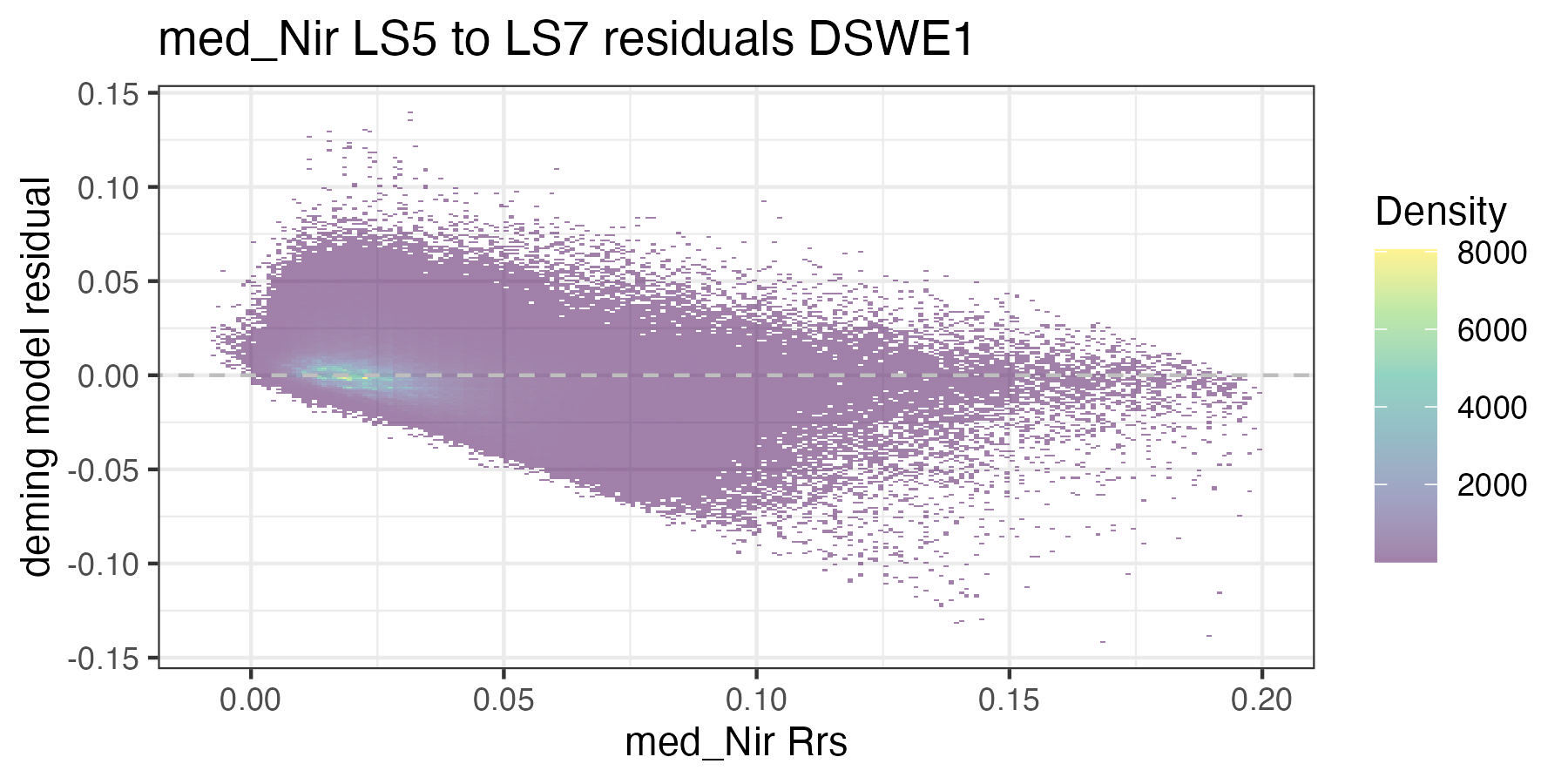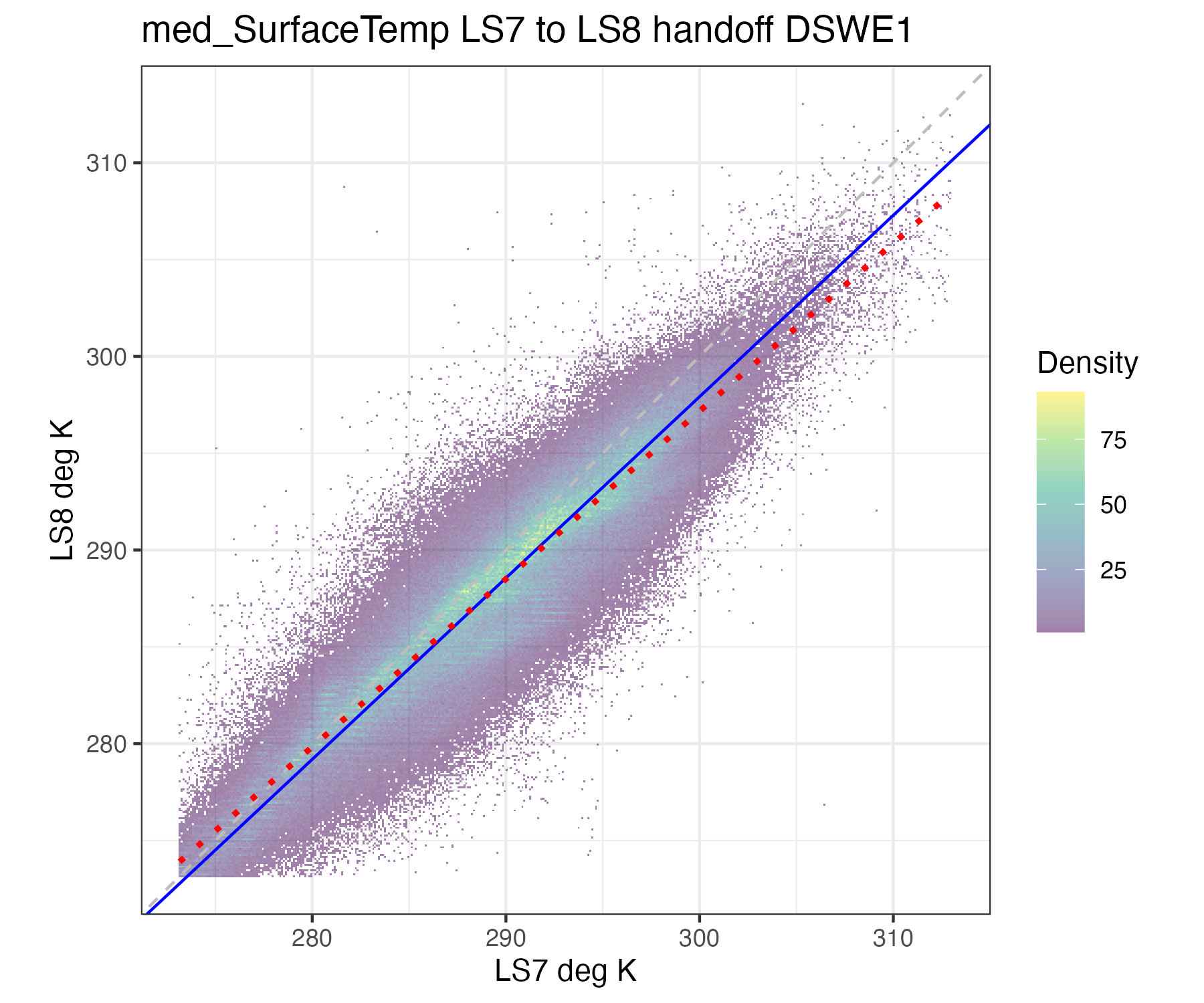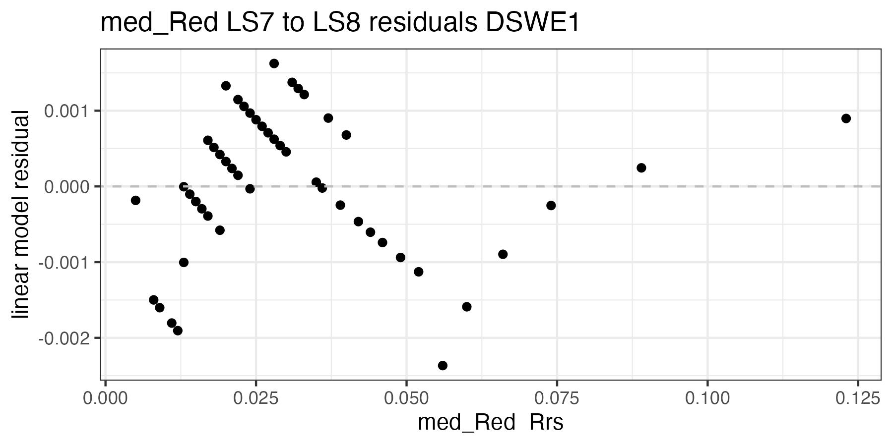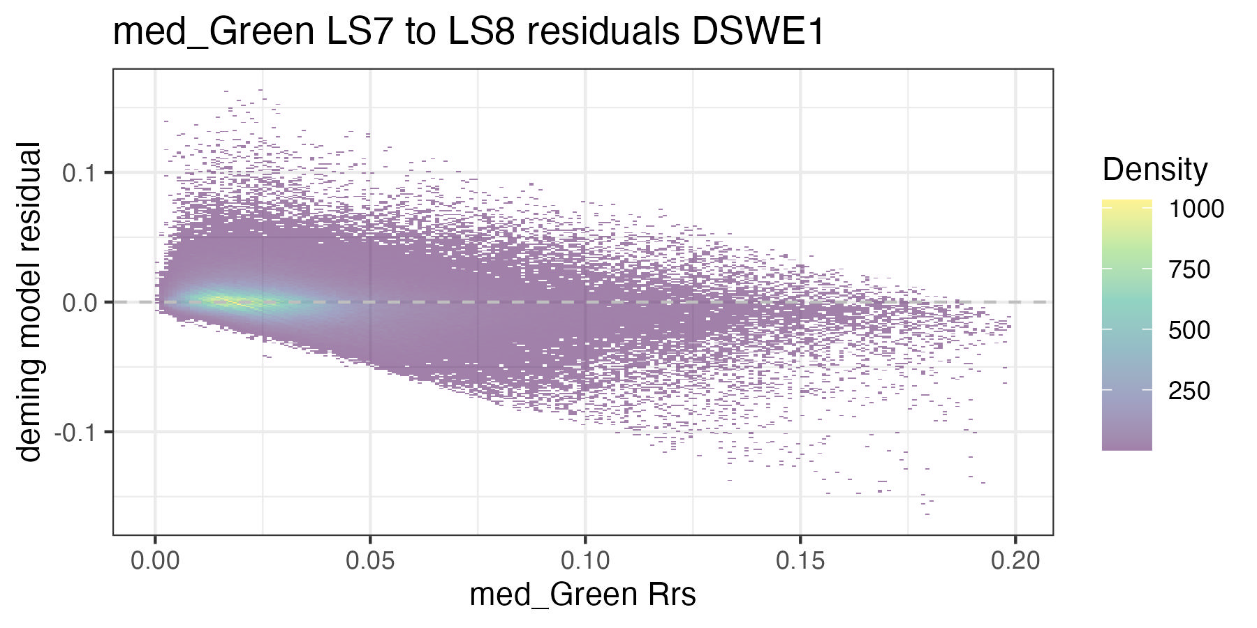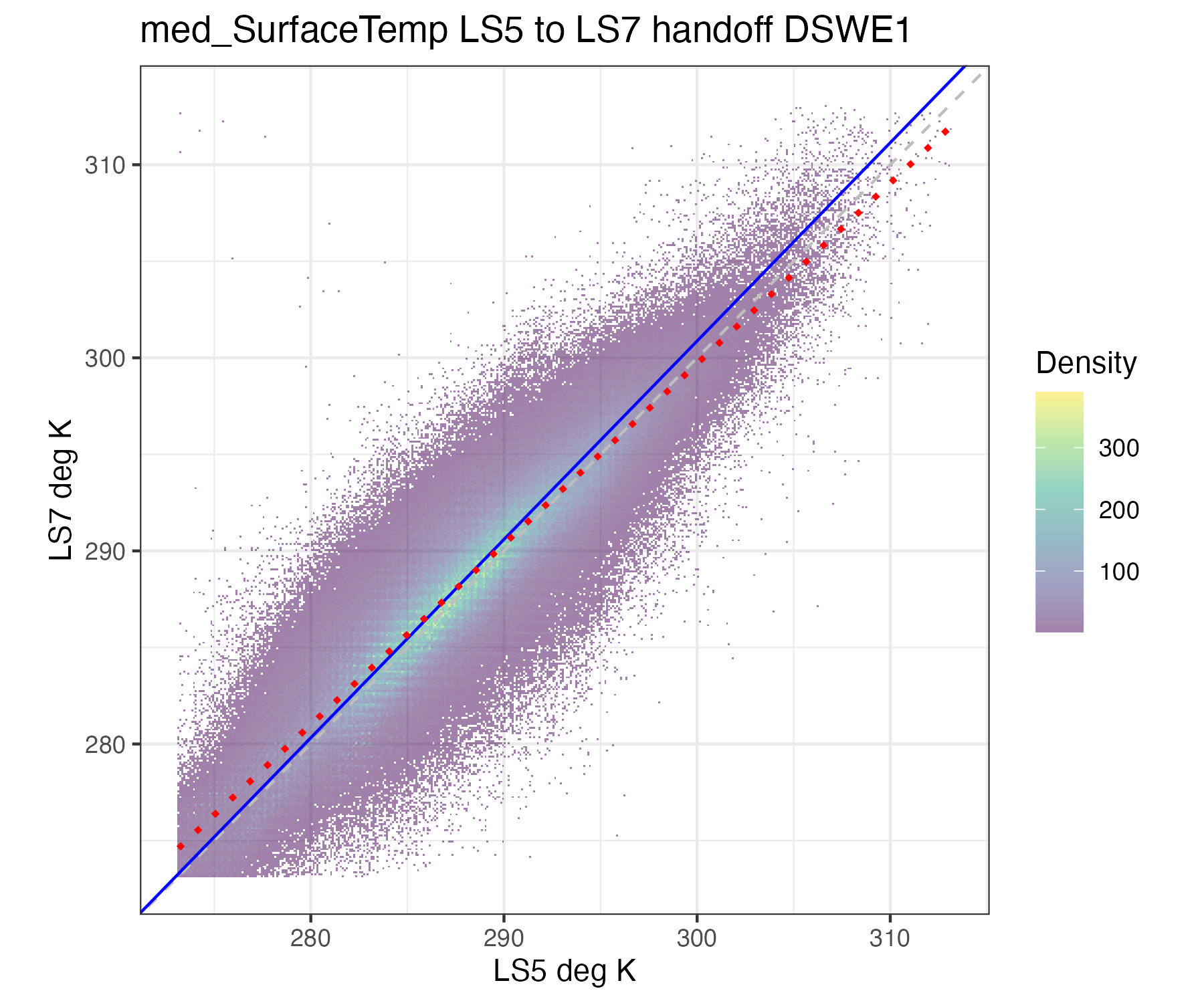 For the purposes of this document, we only present the handoff coefficients for DSWE1 (confident water) and do not investigate differences between the DSWE1 or DSWE1a coefficients, though we provide both. Users should use these handoff coefficients if using data from more than one sensor group (TM, ETM+, OLI).